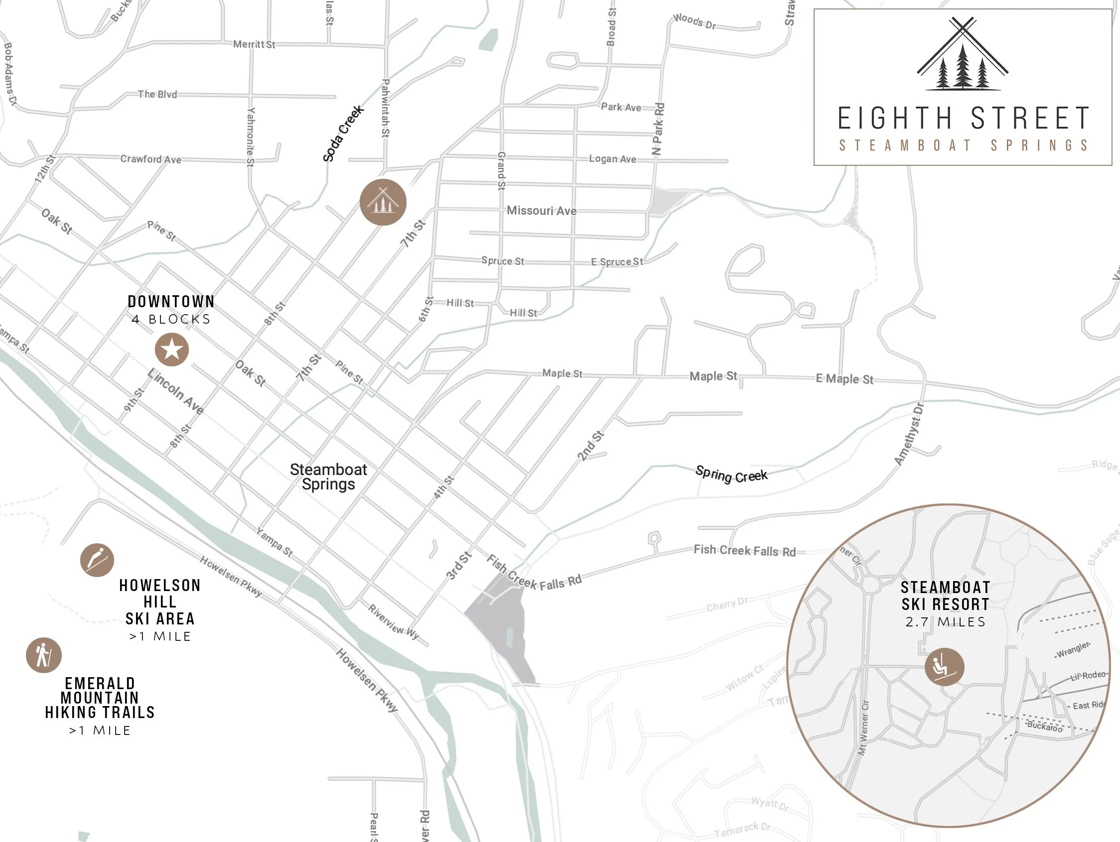 The Eighth Street location places owners at the center of Steamboat’s most established downtown neighborhood, with daily amenities, restaurants, shops, and schools within easy walking distance.
